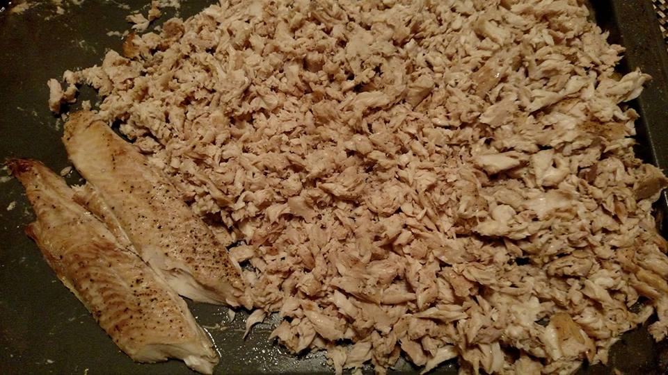 2) pick the meat apart and remove the remaining bones (there were some but I did a better job than I thought during cleaning)
