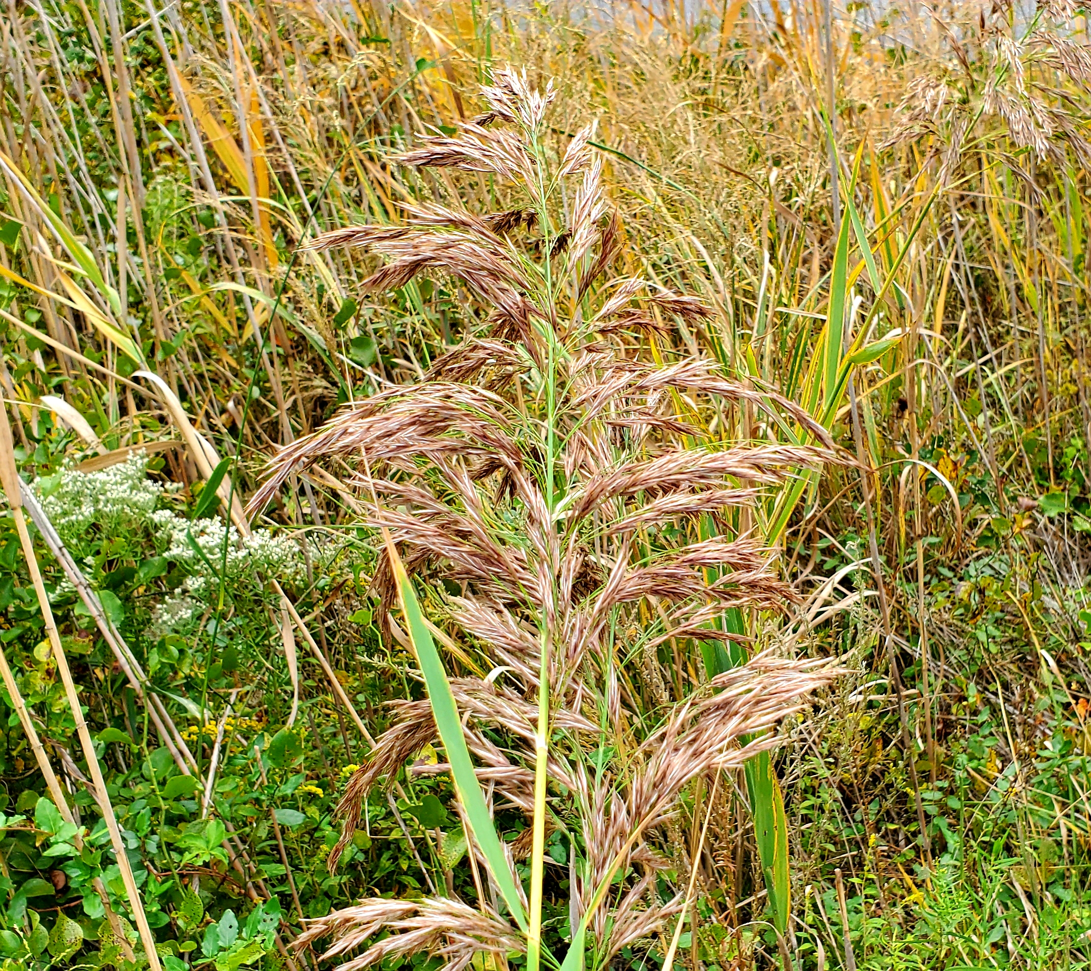 While the native strains grow intermixed with other plants and provides benefits to the ecosystem, the invasive is all bad news. Invasive Phragmites australis , creates large, dense, stands, known as monocultures. These large stands crowd out native species. Growing up to fifteen feet high, it blocks sunlight from reaching competing plants. It can alter the hydrology of our marshes and wetlands by turning open water into semi-dry land, and eliminating the marshes that dozens of species, including fish and birds use as nurseries. In addition, it increases wildfire risks; and actually emits a toxin that helps kill off native plants.