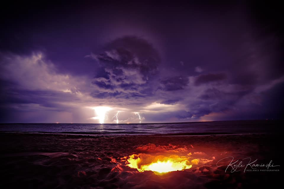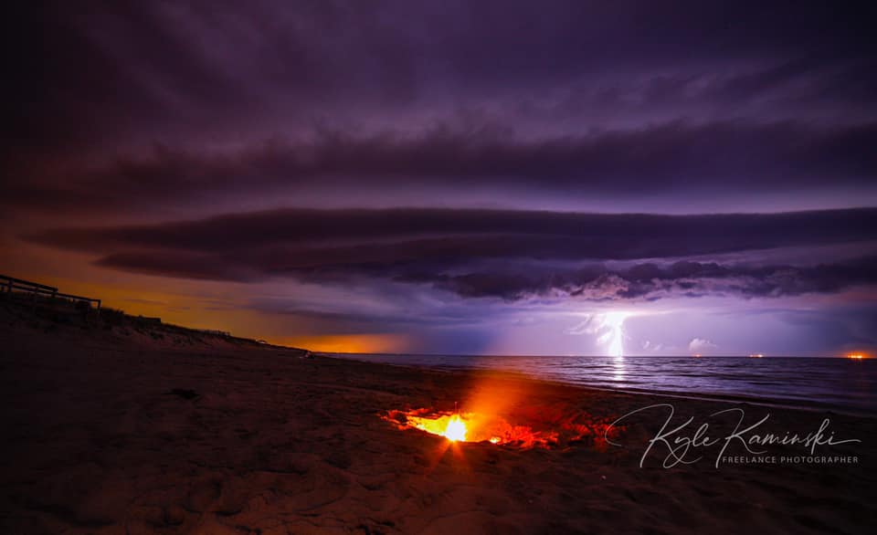 Kyle Kaminski … “I was literally on my way home and saw the thunderhead in the distance and banged a right hand turn down 16 towards Broadkill Beach. I walked down to the beach, and a family was leaving their bonfire behind and I told them let me have it, I’m gonna sit here and take pictures of the storm. The rest was history.”