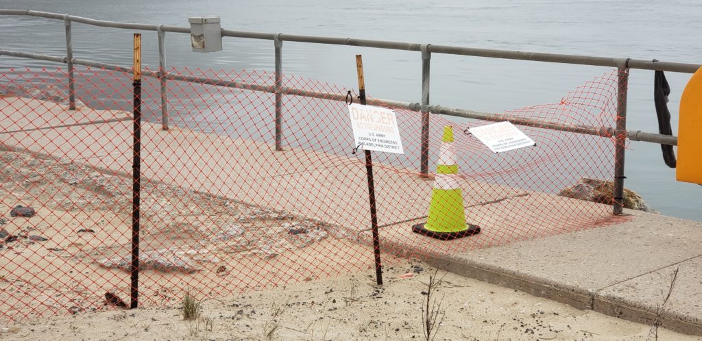 The scour hole eventually got big enough the handicap pier had to be closed as well. Now the Army Corps of Engineers are in the process of scheduling the area to be fixed as well as a couple of other projects. To the tune of forty-three million bucks.