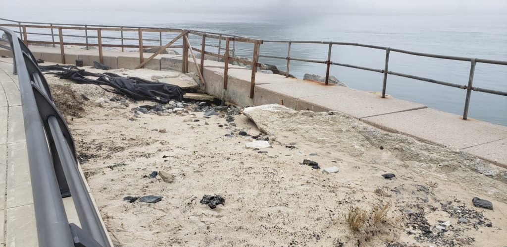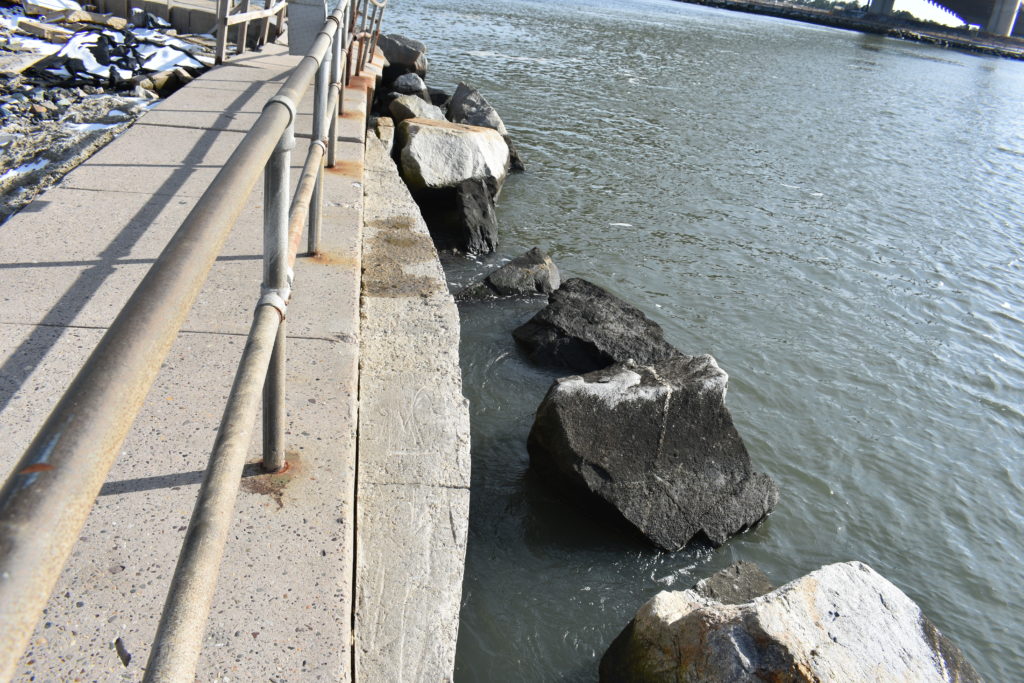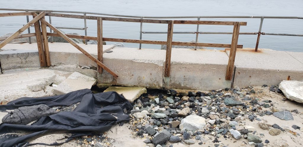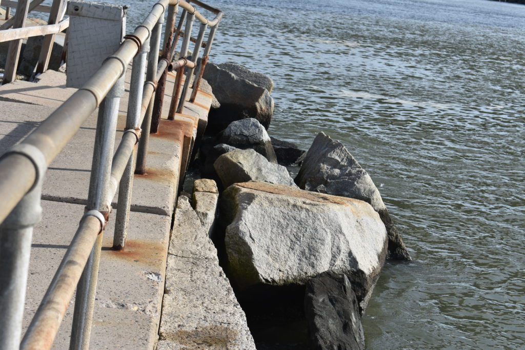 There is a scour hole created by a bad storm a while back. This scour action is causing the rock wall to tumble into the inlet. Usually only during storm surges, but you never know. I can’t imagine that ride.