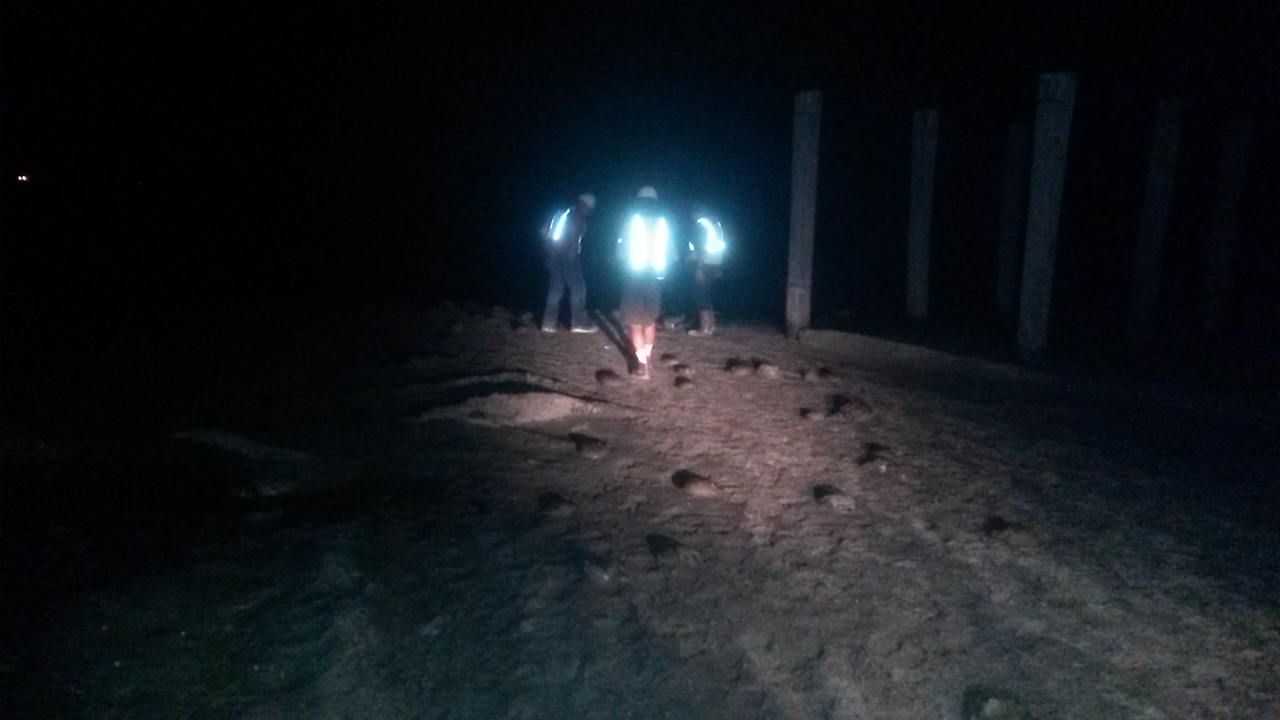 The crabs were collected by one group and then transported in gators by the work crews. We would then unload the gators on the south side to release the horseshoe crabs, two at a time. After two and a half hours we moved close to four hundred horseshoe crabs. The beach looked like a party when we were done and more were coming in from the bay. There are a lot of horseshoe crabs spawning onBroadkill Beach. I have to go back today just to see this project in the day light, the pictures I took last night don’t show the true size of this area. The horseshoe crabs are numerous during the high tides and the up coming full moon their numbers will increase. So far they have enough help but if they need more, I will let you know.